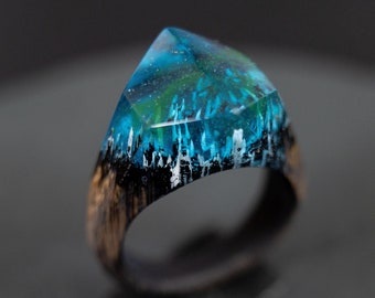 Wood Resin Ring Norway Lights Handmade Jewelry Rings For Women Glow Ring In Dark Ebay