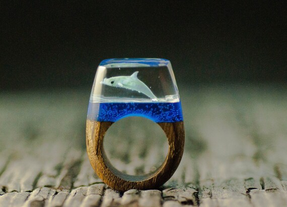 Wood Resin Ring With Dolphin In The Ocean White Snow Woden Etsy Uk